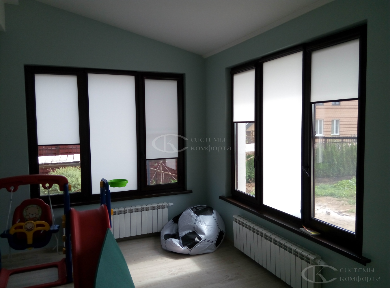 Для больших или высоко расположенных окон идеально подходят автоматические системы с электроприводом. Управление с пульта или со смартфона добавляет комфорта и относится к элементам современного «умного дома».
