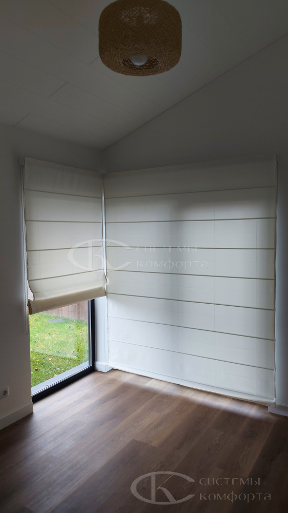 Это тканевые полотна, которые при подъеме не наматываются на вал, а складываются в ровные, благородные горизонтальные складки, создавая мягкий и уютный силуэт у окна. Такой вариант становится идеальным выбором для помещений, где хочется подчеркнуть теплоту и уют, не перегружая пространство объемными портьерами. Римские шторы великолепно смотрятся в спальнях, кабинетах, гостиных в стиле прованс или классика. Они часто выполняются из натуральных, приятных на ощупь тканей – льна, хлопка, что добавляет интерьеру экологичности и тактильного комфорта. По своей функциональности они близки к рулонным шторам, но дарят совершенно иное, более «домашнее» и теплое визуальное восприятие.