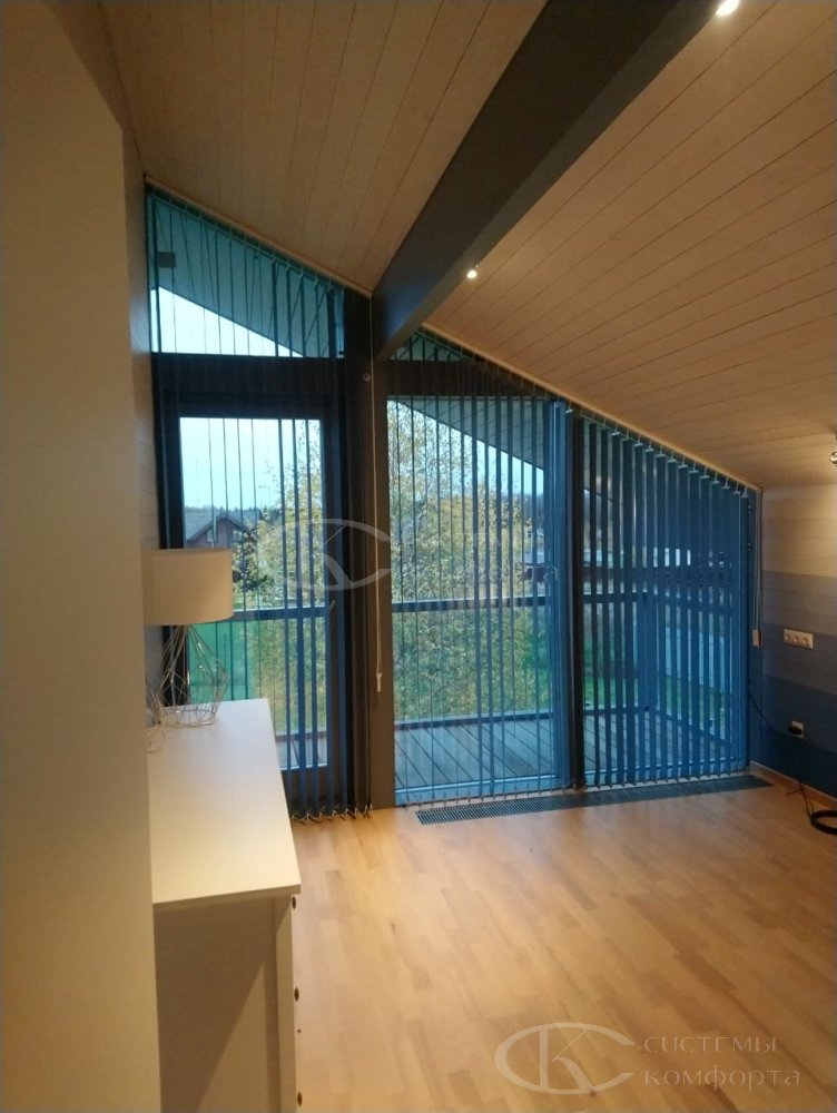 Если в вашем доме есть французские окна до пола, стеклянные двери на террасу, двустворчатые конструкции или большой эркер – вертикальные жалюзи созданы именно для таких оконных систем.