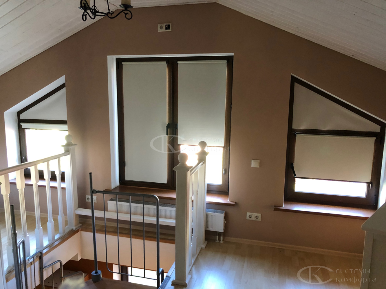 Их конструкция представляет собой ткань, собранную в равномерные, изящные складки-гармошки, способные изгибаться по заданной траектории. Именно эта особенность делает плиссе единственно верным решением для треугольных, арочных, трапециевидных или круглых окон, которые часто становятся архитектурной изюминкой загородного дома.